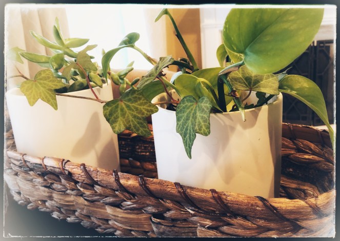 I’ve learned that plants can add hygge, so I took a few plants I already had in other rooms in the house, divided them and put them in new pots. I also bought two plants that will do well in low light. I tucked those into a corner in my office, and put the repotted plants on a low bookshelf in front of my desk so I will see them whenever I’m working. They really do make me happier.